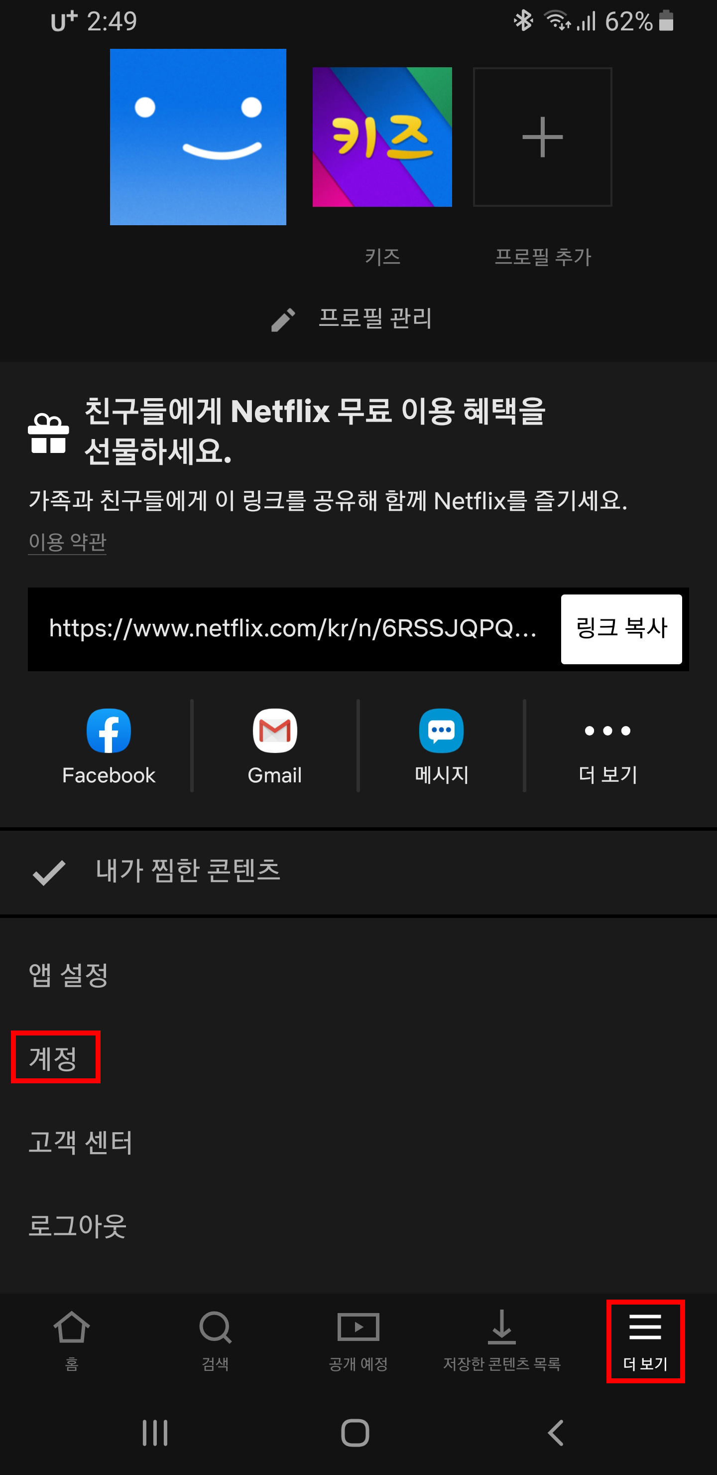 모바일에서도 PC버전과 방법은 비슷합니다. 안드로이드 또는 아이폰에 따라 위치가 조금씩 다르겠지만 계정 > 시청기록으로 들어가 주시면 됩니다. PC 버전과 비슷하니 빠르게 캡처로 설명하겠습니다.